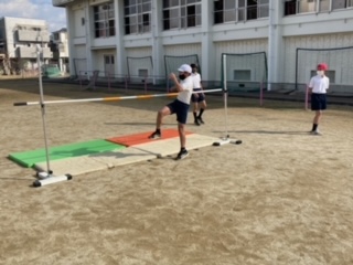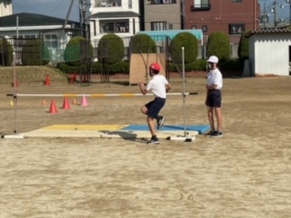 体育の学習で走り高跳びをしています。目標を決めて何度も挑戦し、記録がどんどん伸びてきました。本日の最高は120センチメートルでした。安全に気を付けて、今後も行っていきます。