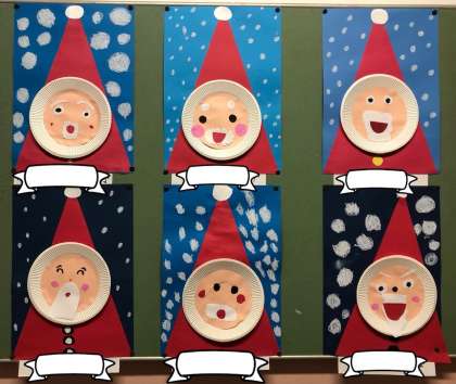 今週、色画用紙と紙皿を使って、サンタクロースを作りました。