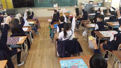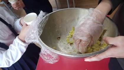 サツマイモで乾杯して、用意していた分はどのクラスも完食でした。