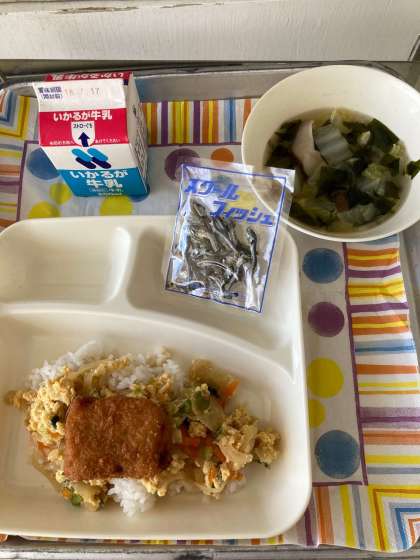 配食時にこの具をご飯にかけ、一口トンカツをのせます。