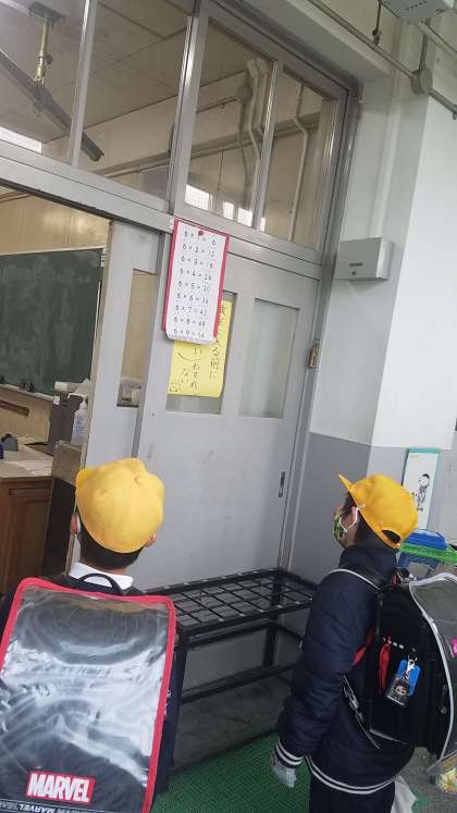 見ながらでもいいので、九九を唱えてから教室に入ります。