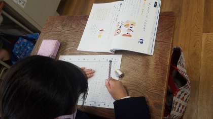 みんな誰に書きたいか、何のことについてありがとうと伝えたいか、他に伝えたいことは何か、ずくに思い付いたようで二時間足らずで学習が終わりました。