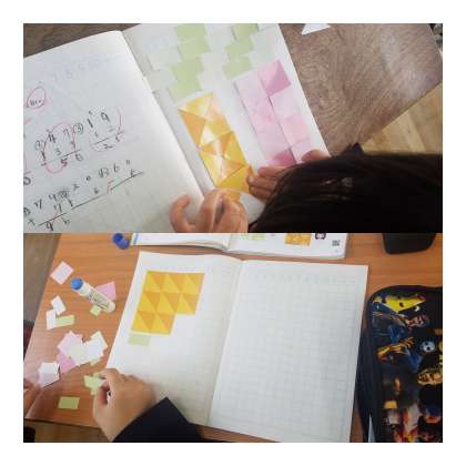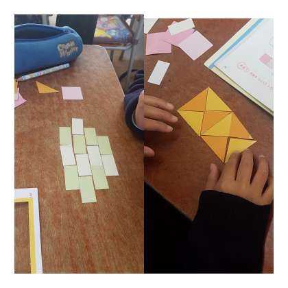 「三角形と四角形」の学習もテストが終わり、お楽しみの「もようづくり」の時間です。