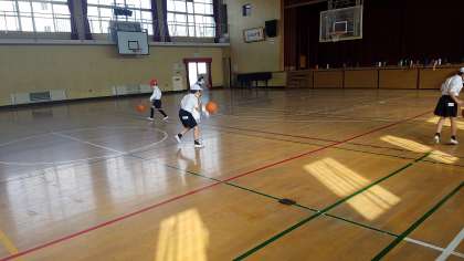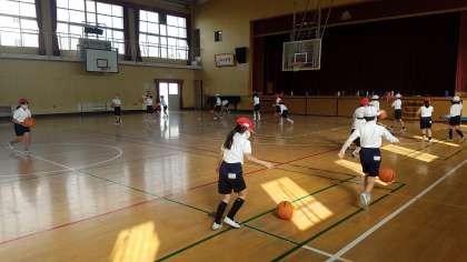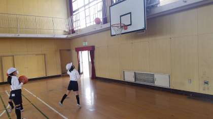とても大きなバスケットボールをうまく使えるようになってきました。