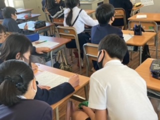 今日はお楽しみ会をしました。ワードウルフ、イントロクイズ、ビンゴゲームなどたくさんの遊びをしました。係の子がサンタやトナカイの格好をして盛り上げてくれました。