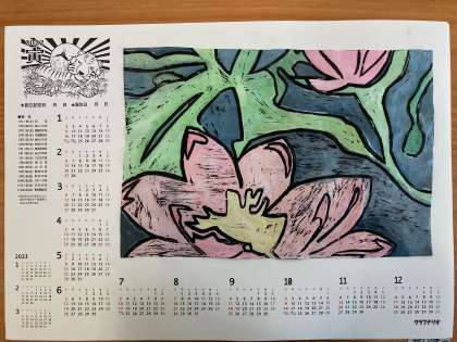図画工作で「世界の名画を彫ろう」の学習を行いました。12月から少しずつ制作し、やっと完成しました。線以外すべて彫刻刀で彫り、和紙に写し、絵の具で色を塗りました。子どもたちは力作ができ、とても満足そうでした。1枚はカレンダーにして持ち帰っていますので、ぜひ家で飾ってください。