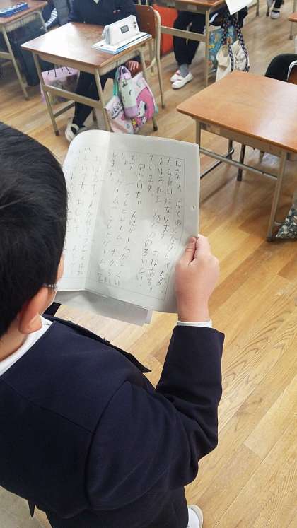 作文用紙に書いたので、発表です。
