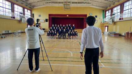 1時間目から、順番に講堂で学級写真の撮影を行っています。できた写真は、後日希望される方に、インターネットにて販売させていただく予定です。
