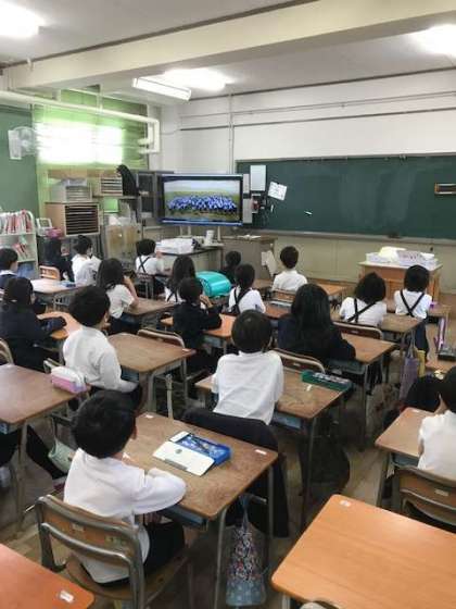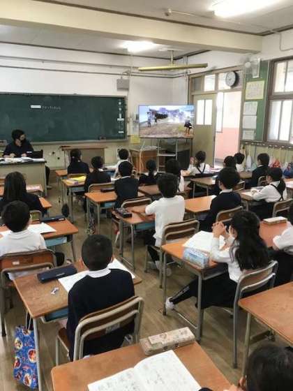 4月21日(木)の朝の時間に、テレビ放送で1年生をむかえる会がありました。