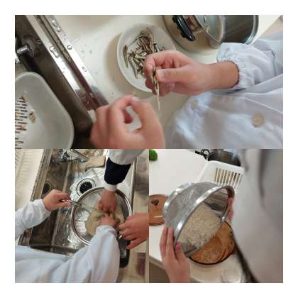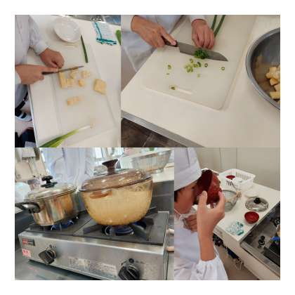 油揚げの短冊切りは、各班によって切り方に個性が出ていました。