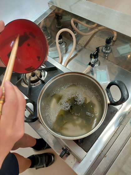 欠席で参加できなかった人のために、放課後にみそ汁だけですが調理実習をしました。
