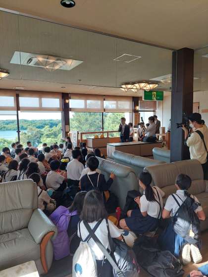 閉舎式が終わり、宿舎のみち潮さんを出ました。子どもたちは、変わらず元気です。