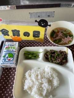 「チンジャオニューロウスー」は中国料理で、「チンジャオ」がピーマン、「ニューロウ」が牛肉、「スー」が細切りという意味です。牛肉と細切りにしたピーマン、たけのこを使い、砂糖、こいくちしょうゆ、オイスターソースで味つけします。毎回好評な献立です。