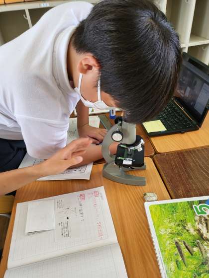 初めてのけんび鏡でしたが、自分たちでピントを合わせたり、明るさを調節したりして活動を進めました。
