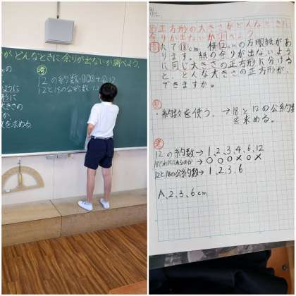 1時間目の算数科では、公約数を使った問題に取り組みました。