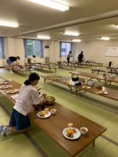 食事係さんが、夕飯の準備をしてくれています。