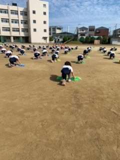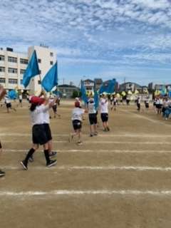 徐々に本番に近い形で、フラッグやポンポンなどの道具を持ちながらの練習も始まっています。道具を持つことで、やる気もアップです!練習は、時にはつらく感じることもあるかも知れません。一つ一つ乗り越えて、自信につながる運動会にしてほしいです。
