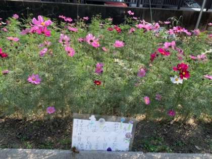 ?正門、東門そばのコスモスが、綺麗な花を咲かせてくれています。