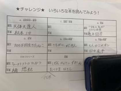 また、読書週間の取り組みの「分類読破チャレンジ」に、挑戦している子もいました。(写真下)