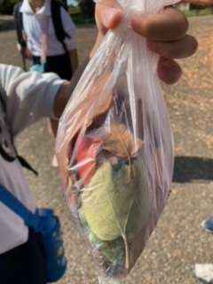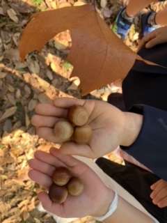 低学年の子たちは、落ち葉やどんぐりも見つけていました。