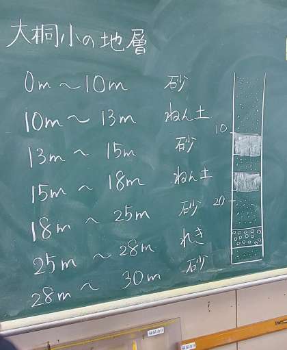 大桐小学校の地層について、ボーリング資料を使ってまとめています。