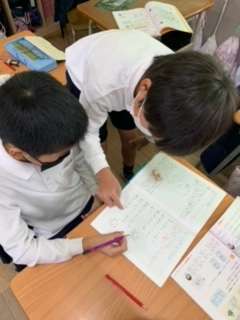 早く解けた子は、悩んでいる子に優しく丁寧に教えてあげていました。