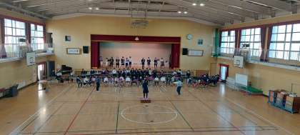 音楽室とは違う、音を合わせる難しさを感じながら、練習を重ねます。