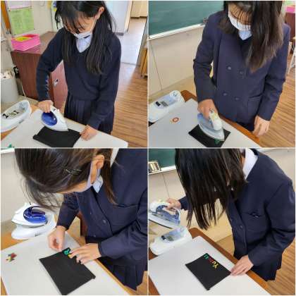 好きな形にしたポケットに、アイロンを使って、名前や模様をつけていきます。それぞれの工夫が見えて、完成が一段と楽しみになってきました☆