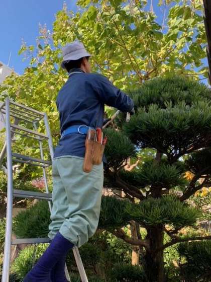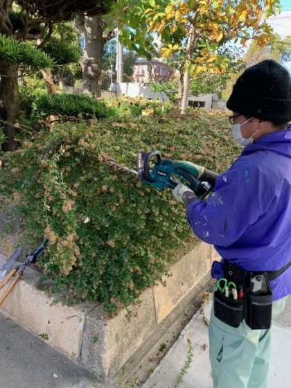 今日は、正門玄関を入ってすぐの樹木の剪定をしてくださっていました。