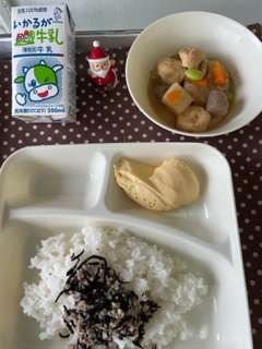 「魚ひじきそぼろ」は魚ミンチをいため、料理酒をかけます。さらに、ひじきをいため、甘辛く味つけし、、しそを加えて風味を増しています。ご飯によく合う一品です。
