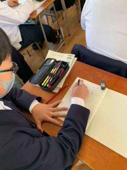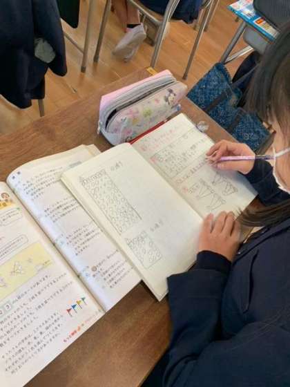 6年生の教室に入ると、算数の授業中でした。素晴らしい集中力で勉強していたので、思わずホームページにと写真を撮らせてもらいました。近くにいた男の子から、小さな声で「ぼくも撮って」とリクエストされました笑