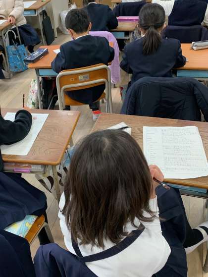2年生の教室では、2年生になってできるようになったこと、できたことを振り返ってワークシートにまとめていました。