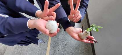 あれ、6年生があんな東校舎近くにいます。