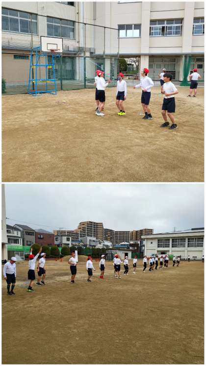 今日は、5分間走をしたあと、みんなでつなげ跳びをしました!