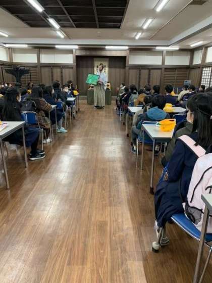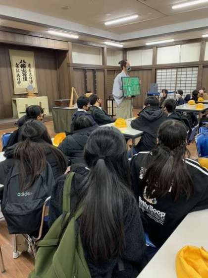 おもしろ体験。昔のくらしの様子を教えてもらっています。