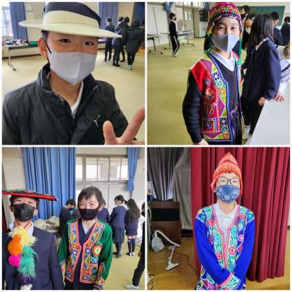 今日は、民族学博物館から借りた様々な国の服や楽器になどを見に行きました!!