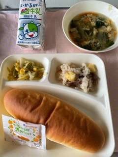 「中華おこわ」は、もち米に焼き豚、くり、しいたけ、調味料を加えて、焼き物機で蒸し焼きにします。チキンブイヨンとごま油でコクと旨みを出しています。