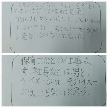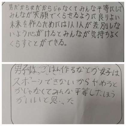 先週、SDGs学習の一環で、ジェンダー教育に取り組みました。