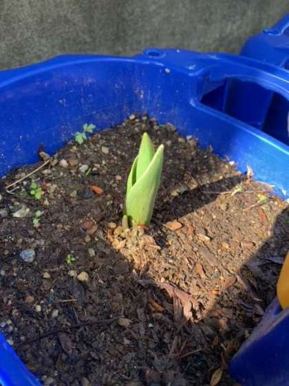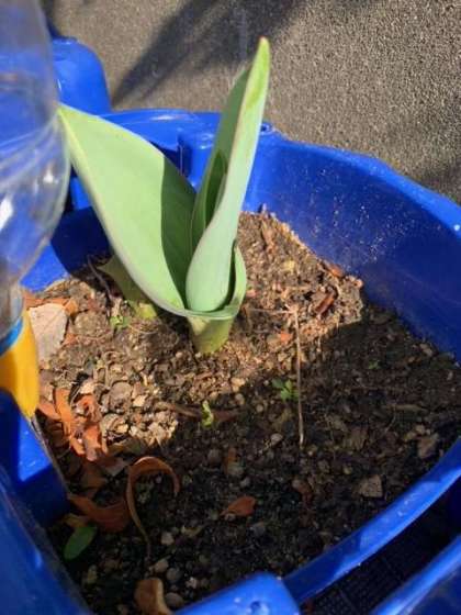 1年生が、育てているチューリップの芽が、少しずつ大きくなってきています。