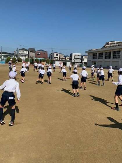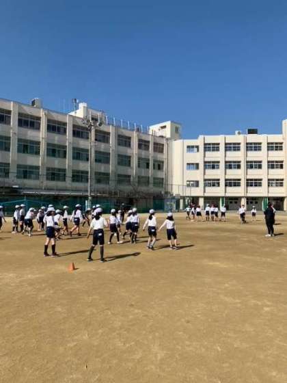体育時間を合わせられる6年生と4年生のクラス同士で交流ドッジボールをしていました。