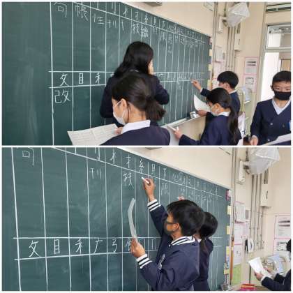 今日は、部首についての振り返りです。プリントに書き込んだものを、黒板に書いて、確認しました。
