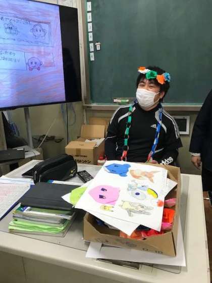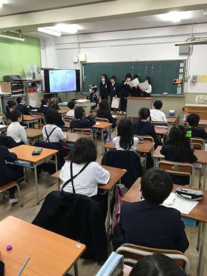 2年の教室では、お楽しみ会で各グループごとにクイズやデジタル紙芝居等の出し物を披露していました。