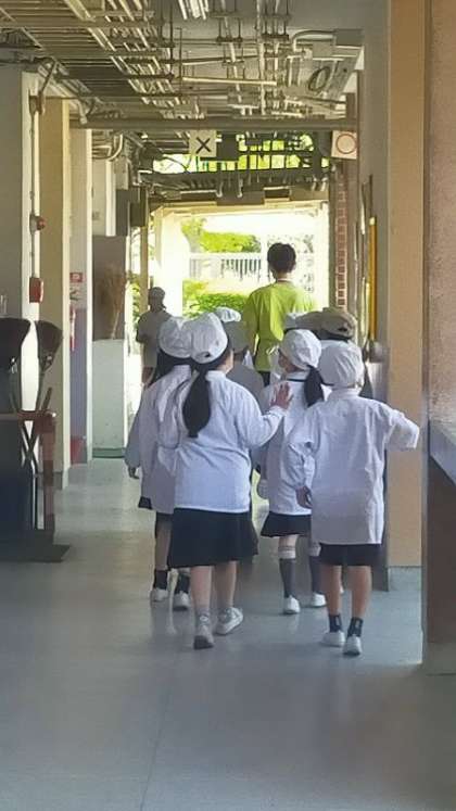 決まったばかりの給食当番で、給食を取りに行きます。新しいクラスのルールで給食を配膳し、「いただきます」をして、おかわりもします。今日のメニューは、別でアップしていますが「カツカレー」でした。どのクラスもおかわりに列ができていました。