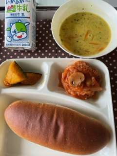 「煮込みハンバーグ」は、炒めたたまねぎとマッシュルームにケチャップ、ウスターソースで味つけしたソースでじっくりと煮込み、しばらくおいてから配缶します。