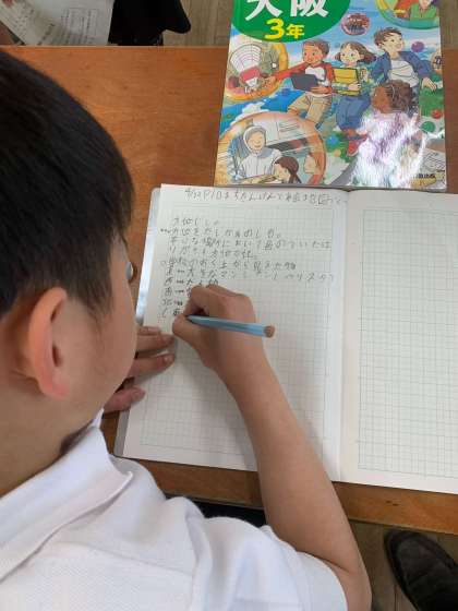 3年生の教室に入ると「かなりきつい!」と言いながら、黒板のノートを取るのを頑張っている子がいました。