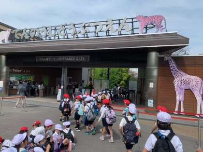 お待ちかね。2年生は、春の遠足。天王寺動物園に着きました。