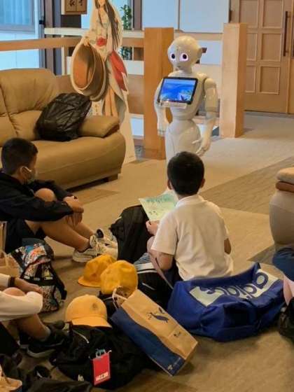 ペッパーくん(かしこくん)が、宿の使い方についての説明をしてくれました。
