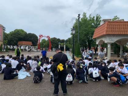 スペイン村のグループ活動が終わりのシベレス広場に集合です。