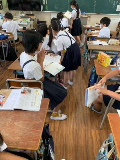 子どもたちは、お話から上野さんの気持ちや、普段自分を支えてくださっている方や取って行くべき行動について一生懸命考えていました。