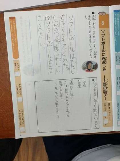 上野由岐子さん。色々な感情の変化の中で、ソフトボールと向き合ってきた上野さんのエピソードから、支えてくださっている周囲の方への感謝について考える学習です。